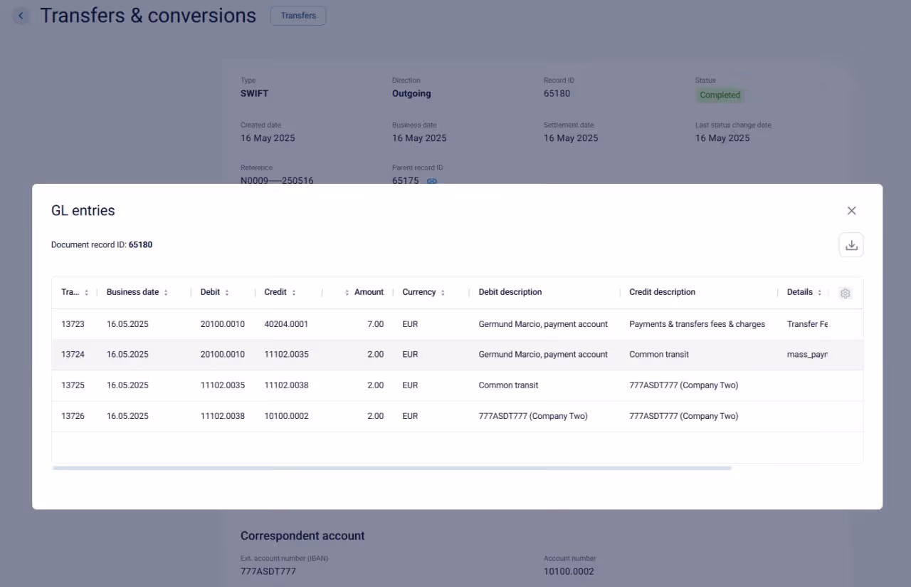 Full nostro and vostro account management, giving firms real-time visibility of positions across their correspondent banking relationships.