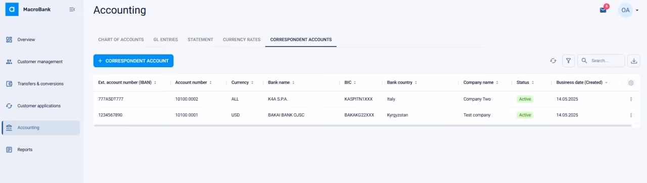 Unlike most core banking platforms, Macrobank includes a built-in financial accounting module as standard. This means firms run their full general ledger, track financial positions in real time, and maintain audit-ready reconciliation records in the same system they use to manage customer accounts and process payments — with no third-party accounting integration required.